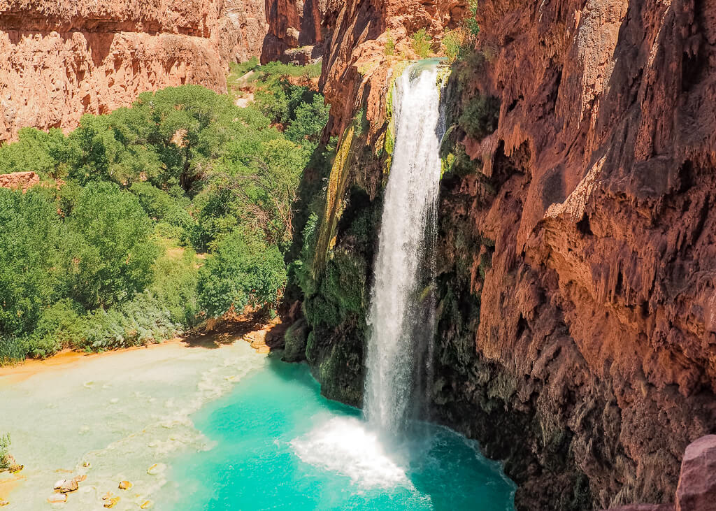 The closer you get to the trailhead, the sun will begin to rise, illuminating the towering canyon walls one last time. Pause to take in the view—it’s a breathtaking farewell to Havasu Falls.